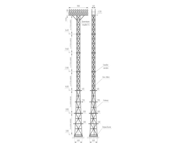 Мачта освещения высотой 45 купить металлическую по выгодной цене в Новосибирске предлагает компания ТПК МеталлПром.