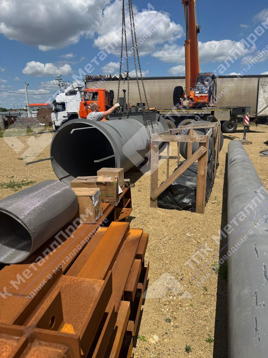Для производства таких изделий мы используем листовой прокат, аналогичный тому, что применяется при изготовлении труб большого диаметра - с соблюдением требований ГОСТ и повышенной устойчивостью к коррозии.